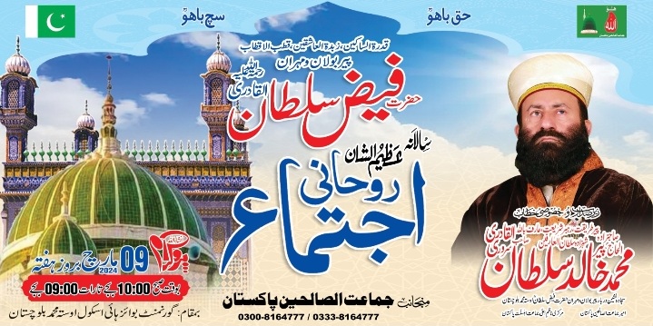 9th March 2024. A one day URS Mubarak Pir Boolan O Mehran Hazrat Faiz Sultan cum Rohani IJTAMA has been